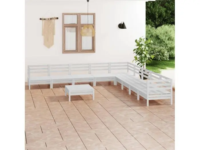 10-delige Loungeset massief grenenhout wit