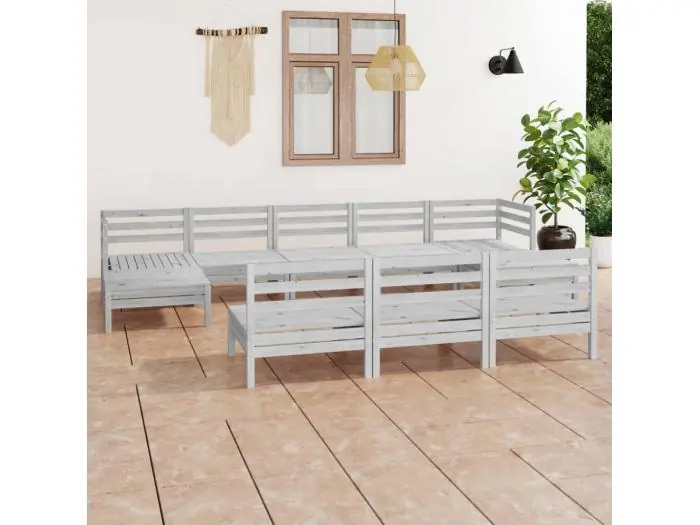 10-delige Loungeset massief grenenhout wit
