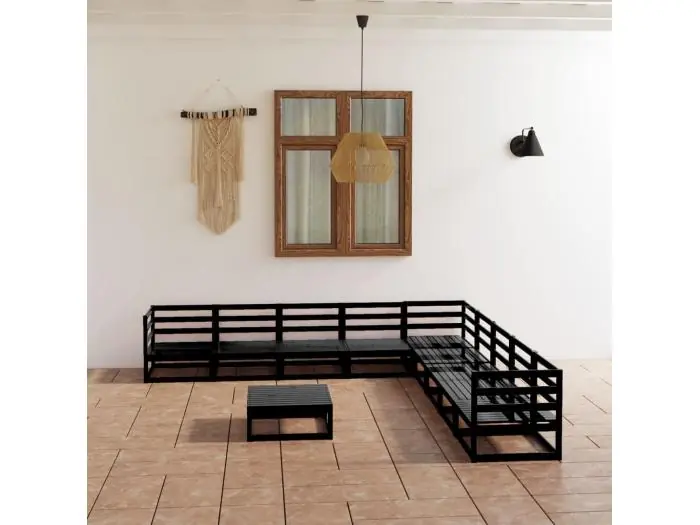10-delige Loungeset massief grenenhout zwart