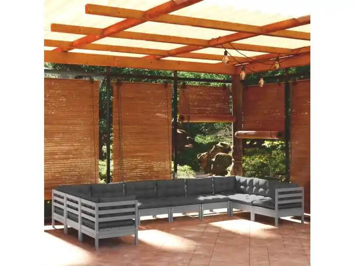 10-delige Loungeset met kussens grenenhout grijs