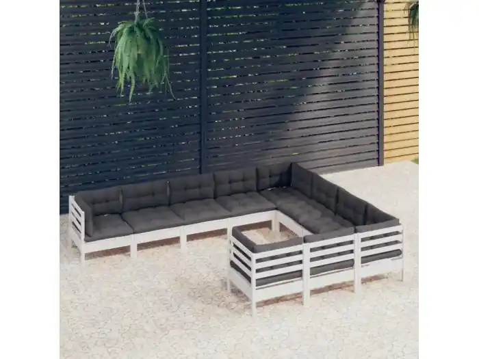 10-delige Loungeset met kussens grenenhout wit