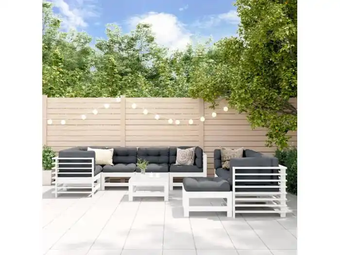 10-delige Loungeset met kussens massief hout wit