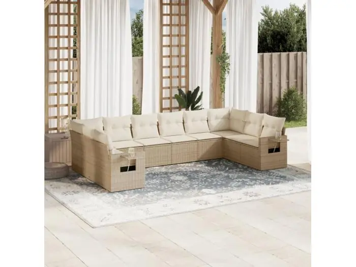 10-delige Loungeset met kussens poly rattan beige