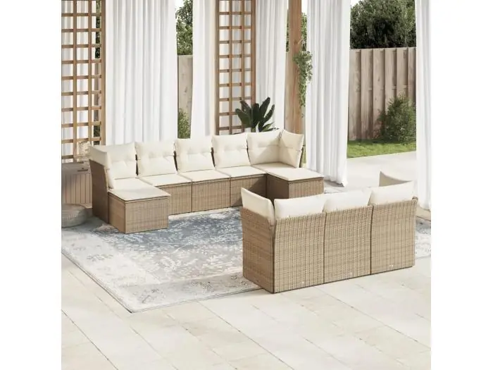 10-delige Loungeset met kussens poly rattan beige