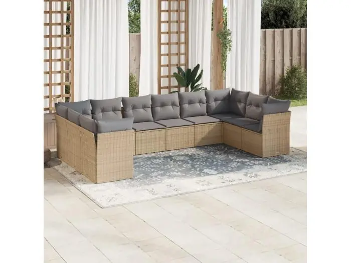 10-delige Loungeset met kussens poly rattan beige
