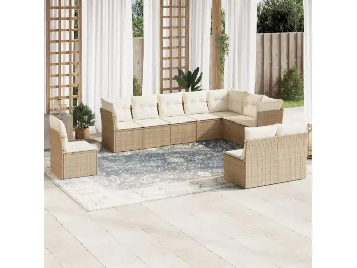 10-delige Loungeset met kussens poly rattan beige