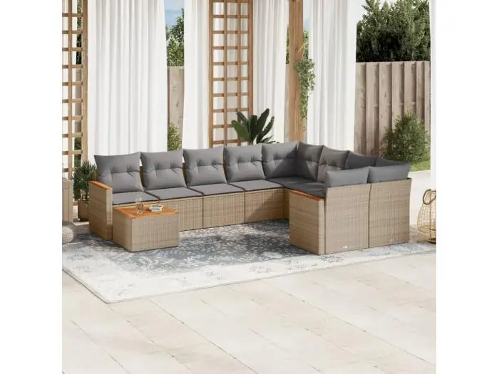 10-delige Loungeset met kussens poly rattan beige