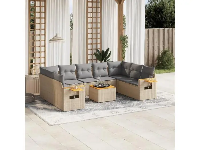10-delige Loungeset met kussens poly rattan beige