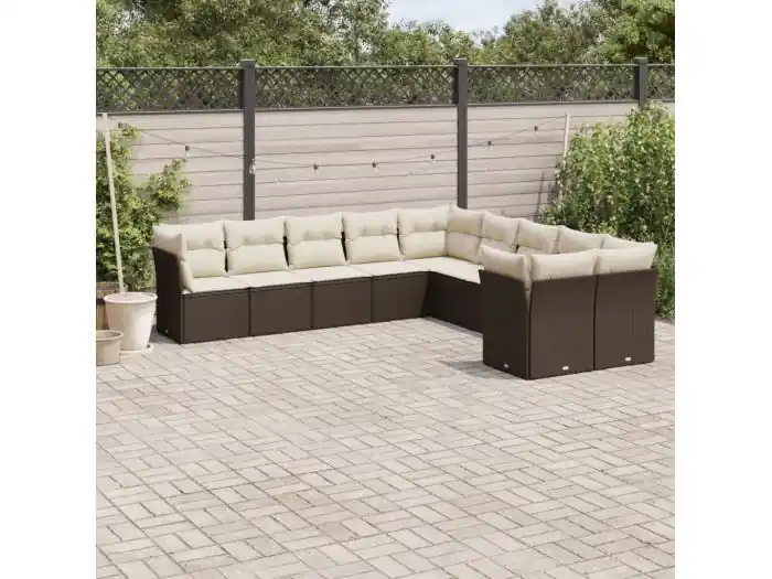 10-delige Loungeset met kussens poly rattan bruin
