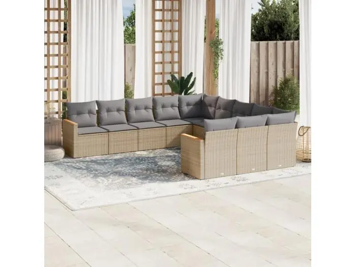 11-delige Loungeset met kussens poly rattan gemengd beige