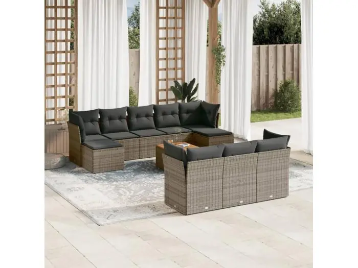 11-delige Loungeset met kussens poly rattan grijs