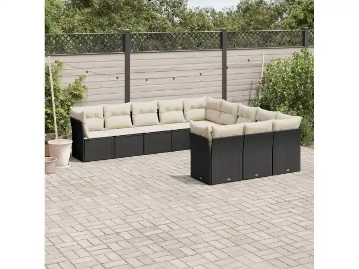 11-delige Loungeset met kussens poly rattan zwart