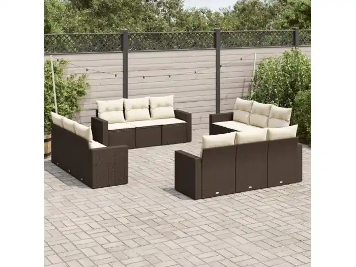 12-delige Loungeset met kussens poly rattan bruin
