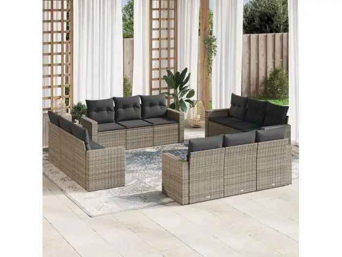 12-delige Loungeset met kussens poly rattan grijs