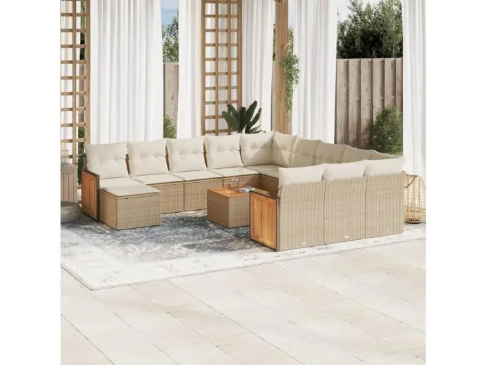 13-delige Loungeset met kussens poly rattan beige