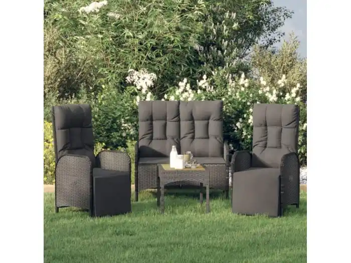 3-delige Tuinset met kussens poly rattan zwart