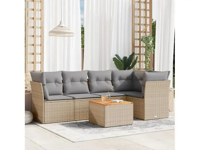6-delige Loungeset met kussens poly rattan beige