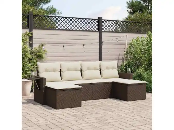 6-delige Loungeset met kussens poly rattan bruin