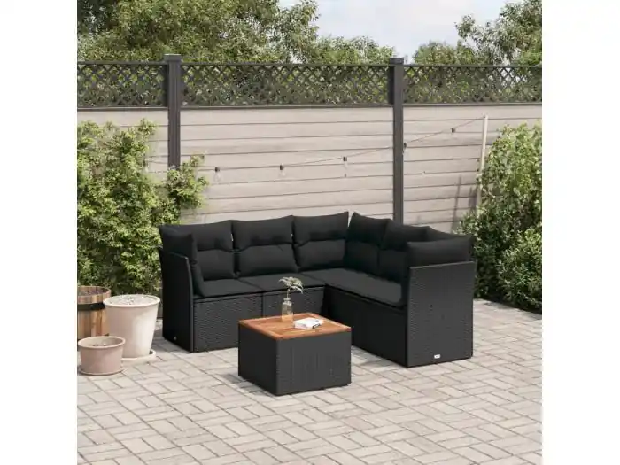 6-delige Loungeset met kussens poly rattan zwart