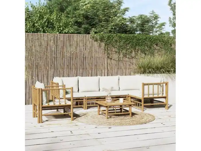 7-delige Loungeset met kussens bamboe crèmewit