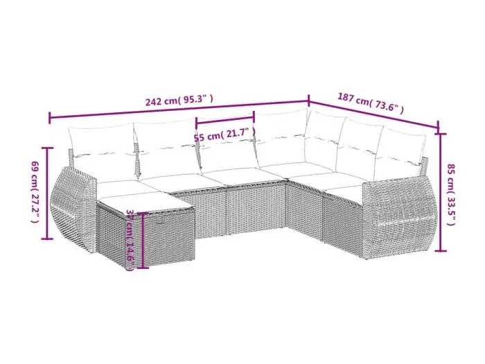 - Modulair ontwerp: deze tuinmeubelset heeft een modulair ontwerp, waardoor hij volledig flexibel en gemakkelijk te verplaatsen is. Op die manier kun je een opstelling van tuinmeubilair cre?ren.