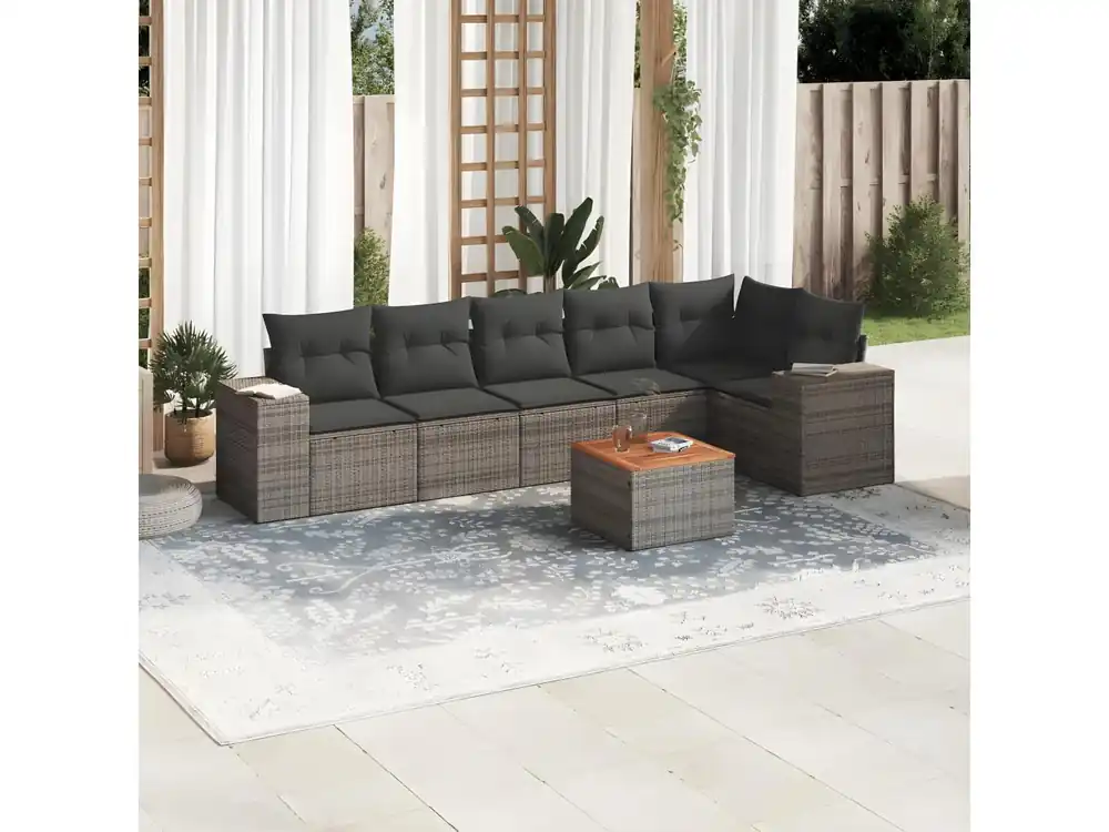 7-delige Loungeset met kussens poly rattan grijs