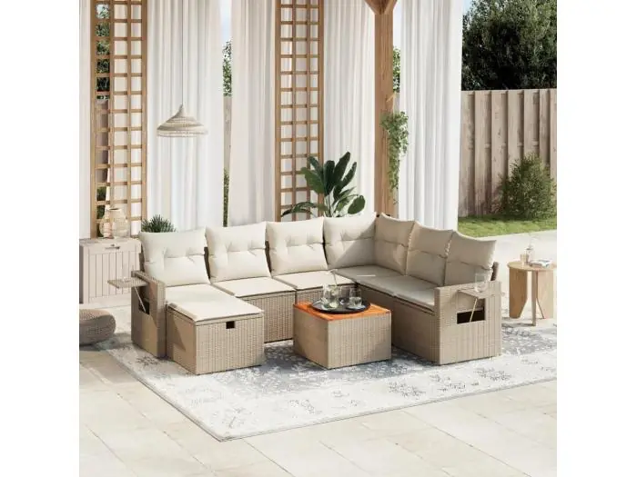 8-delige Loungeset met kussens poly rattan beige