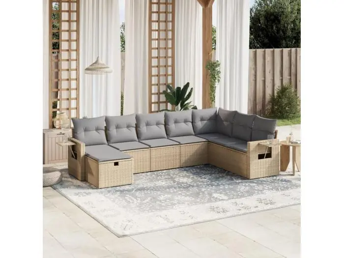 8-delige Loungeset met kussens poly rattan gemengd beige