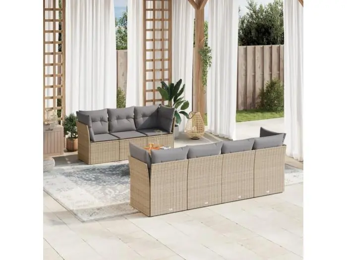 8-delige Loungeset met kussens poly rattan gemengd beige