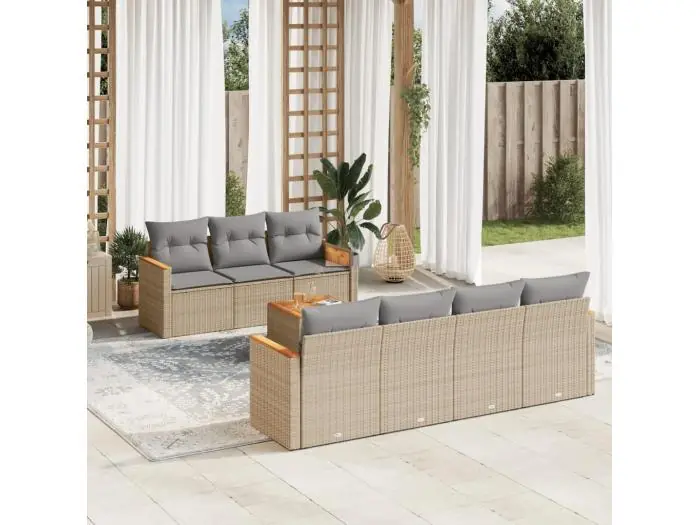 8-delige Loungeset met kussens poly rattan gemengd beige