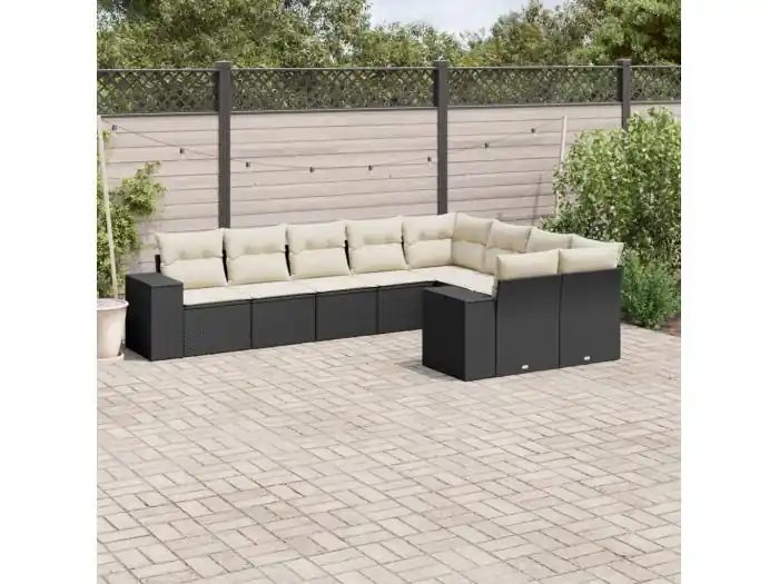 9-delige Loungeset met kussens poly rattan zwart