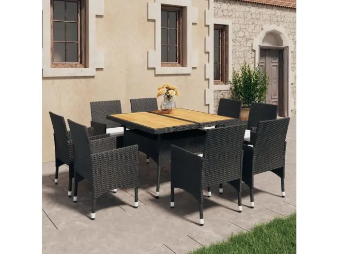 • Materiaal: poly rattan, acaciahout met olieafwerking en gepoedercoat staal