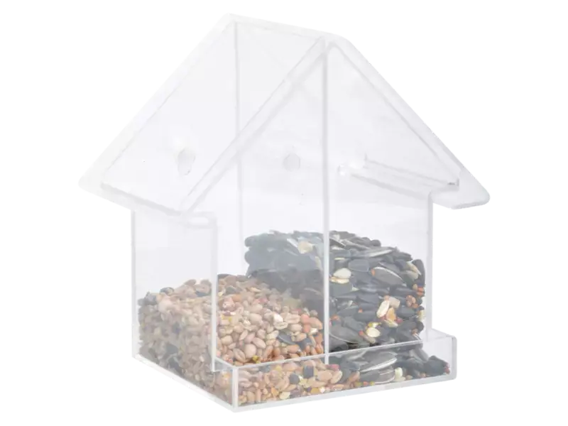 Deze moderne en functionele combi raamsilo heeft verschillende praktische eigenschappen. Het voederhuis wordt met de bijgeleverde twee zuignappen op het raam geplaatst. Dankzij het doorzichtig materiaal is het mogelijk om van binnen te observeren hoe de vogels genieten van hun eten . Daarnaast is het makkelijk te constateren wanneer het combivoedersilo bijgevuld moet worden. Het bijvullen gaat heel simpel, door het naar voren schuiven van het dak. Het voergedeelte is opgesplitst in twee separate vakken, die met verschillende soorten vogelvoer gevuld kunnen worden. De verhoogde rand dient als zitmogelijkheid voor de vogels, hierdoor ontstaat een gescheiden voerbak. De vogels komen niet in het voer te zitten, waardoor ziektes voorkomen worden.