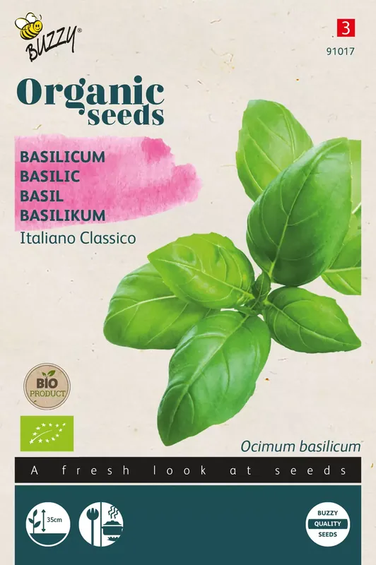 Basilicum – Italiano Classico Zaaien van begin april-augustus in een kweekbak en na 4 weken uitplanten in de tuin of in bloempotten. Het blad kan vers, ingevroren of gedroogd (in een goed afgesloten blik/pot) bewaard worden.