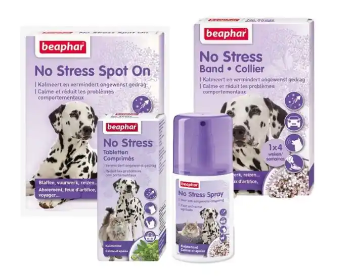 Beaphar No Stress kalmeert op basis van natuurlijke extractenDe Beaphar No Stress lijn bevat producten op basis van natuurlijke extracten, deze producten helpen honden te kalmeren en ongewenst gedrag te verminderen. Een complete lijn die oplossingen biedt voor stressvolle situaties van korte en lange duur. Dankzij de verschillende toedieningswijzen is er voor ieder dier een geschikt product. No Stress voor honden is verkrijgbaar in halsbanden, spot on, spray, verdamper en tabletten.