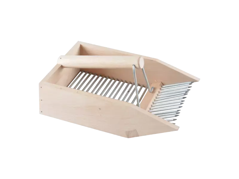 Traditionele bessenplukker voor snel en eenvoudig oogsten van verschillende soorten bessen. Je plukt vele bessen tegelijk door de tanden achter de bessen te haken en de plukker naar voren te trekken. Vervolgens leeg je de plukker makkelijk in een mand.Vroeger trok men er vaak met het hele gezin op uit om in de natuur bessen te plukken. Een goede plukker kon wel tot 35 kilo bosbessen op een dag plukken. Sinds de 19e eeuw worden bessen ook geteeld.