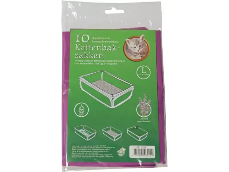 Geparfumeerde biologisch afbreekbare kattenbakzakken. Katten zijn van nature dol op lavendel. Met deze geparfumeerde kattenbakzakken maskeert u de geurtjes en maakt u de kattenbak extra aantrekkelijk voor uw kat. Afmetingen: 50x20x37 cm.