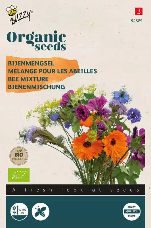 Bloemenmengsel – Bijen Zaai half april-eind mei direct op de gewenste plaats in rijen of breedwerpig. Meng het zaad met fijn zand in een verhouding van 1 op 3 om het zaaien makkelijk te maken. Veelzijdige bloemen die bijen aantrekken.