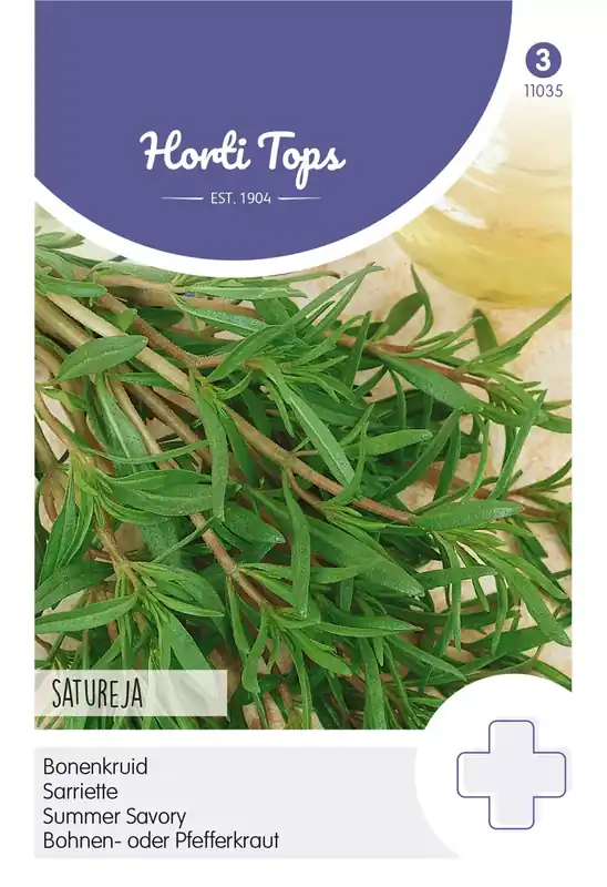 BonenkruidVanaf half maart tot eind mei op regeltjes; in de regel eventueel iets uitdunnen. Lekker bij diverse peulvruchten zoals tuinbonen en bij diverse gerechten; ook als thee tegen hoesten.
