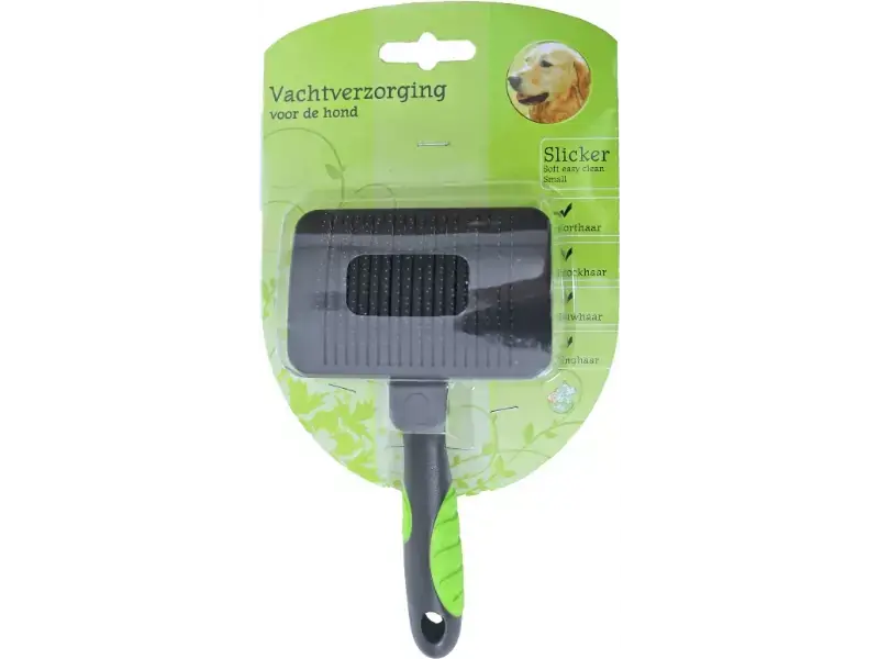 Deze soft slicker verzorgt de vacht van uw hond door middel van het verwijderen van losse en dode haren. De soft slicker is uitermate geschikt voor alle honden met een dunne vacht. Door middel van het Easy Clean systeem, drukt u met ????n duimbeweging alle verwijderde haren tussen de pennen vandaan. Het regelmatig kammen en borstelen van uw hond draagt er aan bij dat de vacht in topconditie blijft. Zo blijft de vacht glanzend schoon en ontstaan er minder snel klitten. Verzorg de vacht altijd in de richting van de haargroei, zodat de verzorging voor zowel u als uw hond vlekkeloos verloopt.