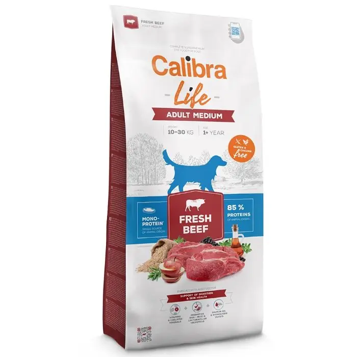 Calibra Life Dog Adult Medium Breed Fresh Beef is speciaal ontwikkeld voor volwassen honden van middelgrote rassen (10-30 kg). Dit hondenvoer bevat vers rundvlees en rijst en is ontworpen voor een gemakkelijke spijsvertering, waardoor het ook geschikt is voor honden met een gevoelige maag. De formule is 100% monoprote?ne en bevat 85% eiwitten van dierlijke oorsprong, zonder tarwe, gluten of kip.