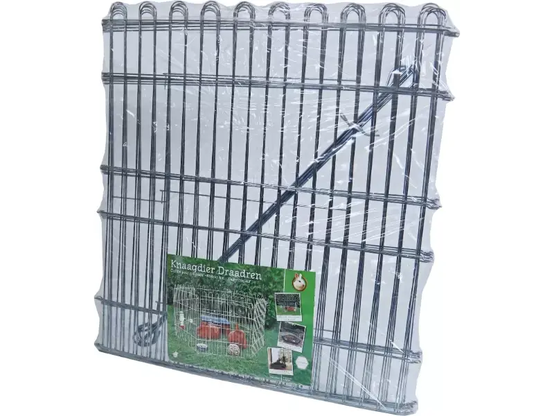 Voor lichaamsbeweging en speelplezier. De metalen konijnenloopren kan zowel op tegels als op gras geplaatst worden. De ren op de tegels plaatsen is goed voor de nagels zodat deze kunnen slijten aan de ruwe ondergrond. Op het gazon kan het dier lekker van het gras smullen. De ren kan bedekt worden met een speciaal afdeknet en of bodemhoes. Afdeknetten en bodemhoezen zijn los verkrijgbaar. Laat uw konijn regelmatig in de ren, zodat het dier voldoende bewegingsvrijheid heeft. Om het konijn op zijn gemak rond te laten lopen is het plaatsen van een huisje om te schuilen aan te bevelen (huisje is niet inbegrepen). De ren bestaat uit 6 panelen met een afmeting van: 67??60 cm per paneel (hxb), 1 paneel beschikt over een deur.