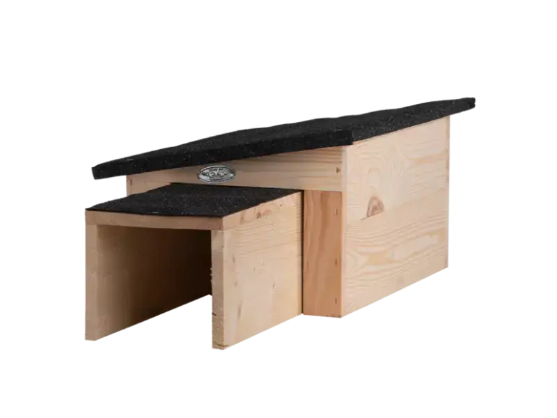 Dit egelhuis is, als imitatie van een natuurlijk nest, de ideale huisvesting voor een egel. Plaats het egelhuis op een enigszins droge ondergrond op een beschutte en rustige plaats in de tuin. Leg wat losse bladeren in het huis. Dek vervolgens het huis af met een dikke laag bladeren, daarna met een plastic zeil vervolgens weer met bladeren, takken en andere natuurlijke materialen. Laat de opening vrij en zorg dat deze niet op het Noorden of Noordoosten is gericht. Het is belangrijk dat de constructie stevig genoeg is om te voorkomen dat honden en dassen deze kunnen vernielen.