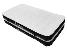 Slaap zoals thuis ?C zelfs in je tent of logeerkamer Het FLOAT Gemina 3-in-1 luchtbed verandert razendsnel van twee losse 1-persoonsmatrassen in ????n extra hoog bed van 40 cm ?C of leg ze naast elkaar voor een royaal 2-persoonsoppervlak. Dankzij de krachtige 150 W pomp, lekbestendig PVC en zachte velours toplaag geniet je overal van een stabiele nachtrust zonder gedoe met losse pompen of wiebelige stapels.Jouw voordelen: – 3-in-1 flexibiliteit: stapelbaar, koppelbaar of solo te gebruiken- Krachtige 150 W pomp: in 3 minuten volledig opgeblazen- Hoge draagkracht: 136 kg per matras (totaal 272 kg)- Licht & compact: complete set weegt slechts 6,8 kg- Stevig 0,45 mm PVC: tot 30?% lekbestendiger dan standaard vinyl- Velours toplaag: antislip, warm en huidvriendelijk