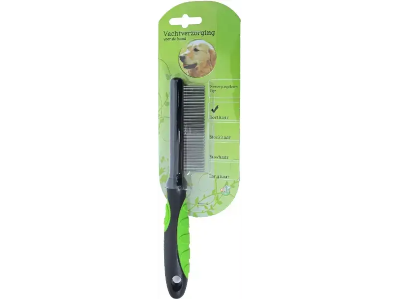 Deze fijne verzorgingskam verzorgt de vacht van uw hond door deze los te maken, op deze manier worden losse haren, vuil en eventuele klitten verwijderd. Deze verzorgingskam is geschikt voor alle honden met een dunne langharige vacht. Het regelmatig kammen en borstelen van uw hond draagt er aan bij dat de vacht in topconditie blijft. Zo blijft de vacht glanzend schoon en ontstaan er minder snel klitten. Verzorg de vacht altijd in de richting van de haargroei, zodat de verzorging voor zowel u als uw hond vlekkeloos verloopt.