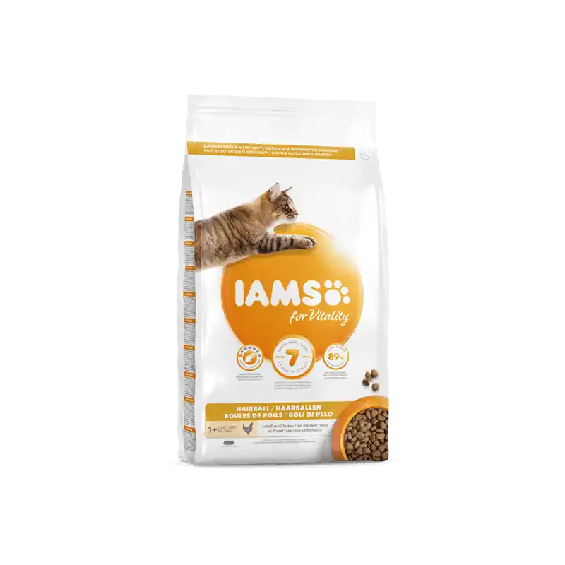 Iams ProActive Health Adult Hairball gaat op een natuurlijke en effectieve manier het ontstaan van haarballen tegen. Dit complete en smakelijke kattenvoer wordt aanbevolen voor volwassen katten vanaf 1 tot 7 jaar.