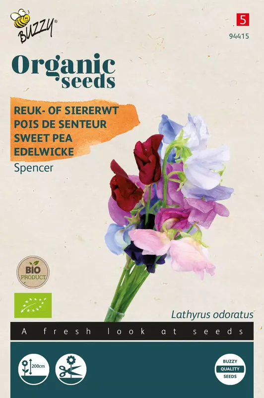 Reuk- of siererwt – Spencer, gemengd Zaai half maart-eind mei direct op de plaats van bestemming. Gebruik goed doorlatende grond. Knip de bloemen af met een schaar. Zeer geschikt voor een grote pot of balkonbak.