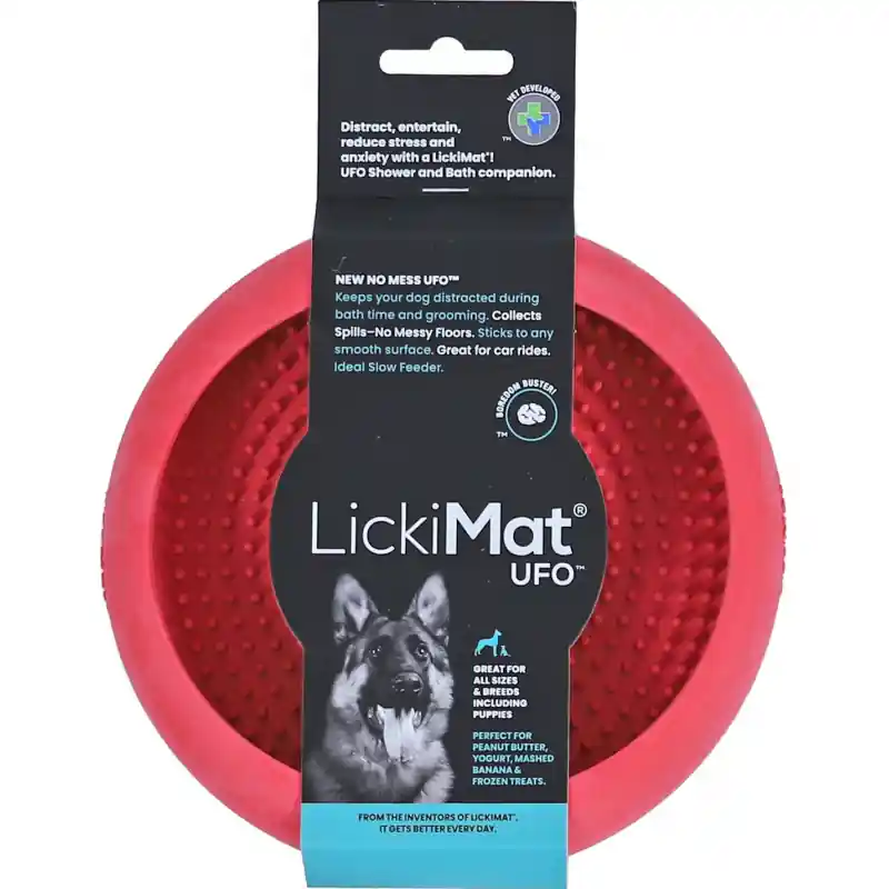 Deze leuke lickimat is speciaal ontworpen om uw hond bezig te houden wanneer de hond stil moet zitten. De ufo kan doormiddel van 4 zuignappen opgehangen worden op verschillende achtergronden.