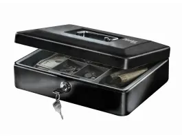 MasterLock Geldkist CB-12MLMasterLock geldkist CB-12ML voor het bewaken en beheren van brief- en muntgeld. De solide stalen constructie biedt een hoog niveau van weerstand. Het geldkistje heeft een verwisselbare geldlade met 6 vakken voor muntgeld en 2 grotere vakken voor bijvoorbeeld briefgeld.Eigenschappen? Veilige opslagplaats voor brief- en muntgeld, ontvangstbewijzen enzovoorts? Met handige draaggreep voor transport? Met sleutelslot voor meer privacy en bescherming ?C inclusief 2 sleutelsSpecificaties? Buitenafmetingen (HxBxD): 9,3 x 30 x 23,5 cm? Binnenafmetingen (HxBxD): 8,7 x 29,7 x 22,9 cm? Volume: 5,91 L? Gewicht: 2,1 kg? Kleur: ZwartIn de doos? MasterLock geldkist CB-12ML? Verwisselbare geldlade? 2 sleutels