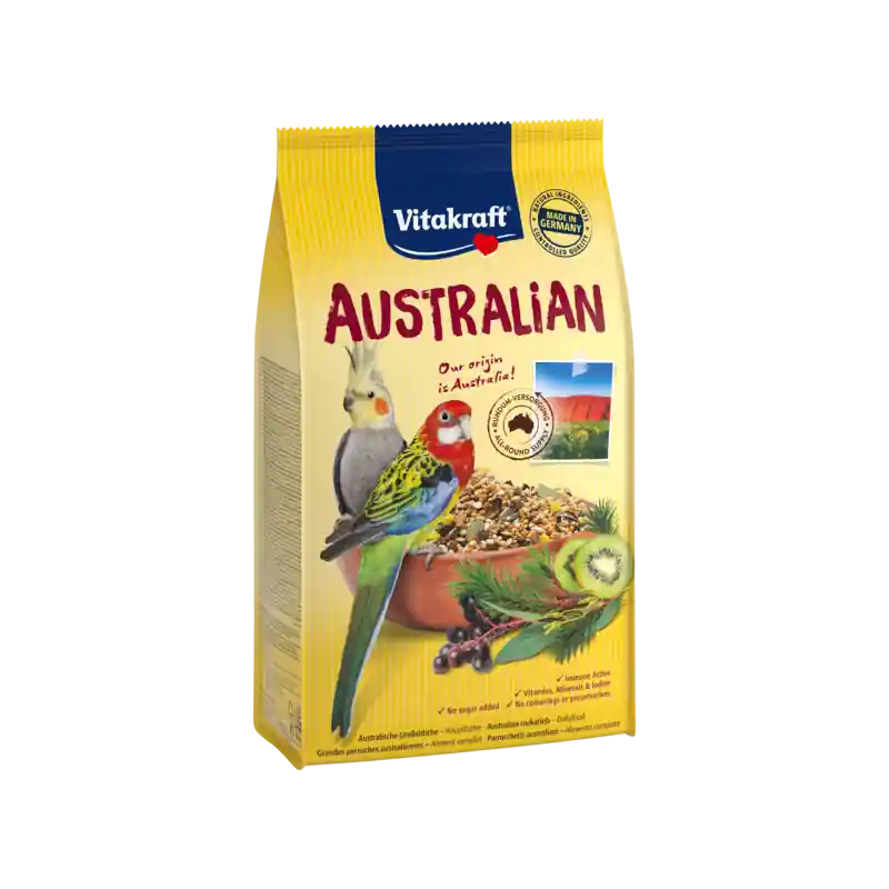 Met het Vitakraft Menu Valkparkieten Australian geef je de valkparkiet een gevarieerde mix aan natuurlijke ingredi?nten uit Australi?. Dit vogelvoer heeft onder meer gezonde vitaminen, mineralen, sporenelementen en maagkiezels. De zak heeft een inhoud van 750 gram.